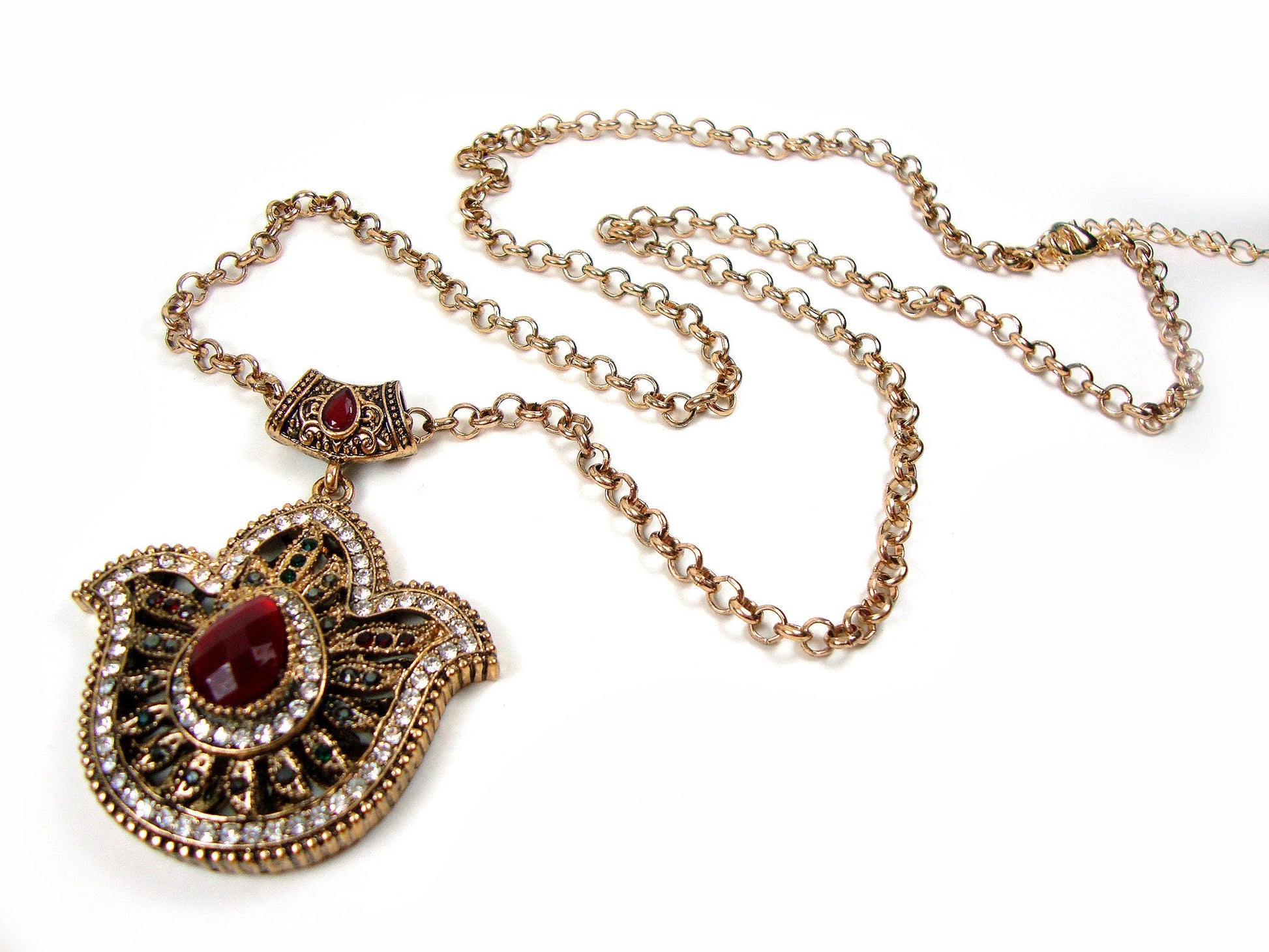 Byzantine Traditional Big Crystal Stones Chain Pendant 60x50mm , Ethnic, Antique Turkish Traditional Jewelry, Turkish Pendant