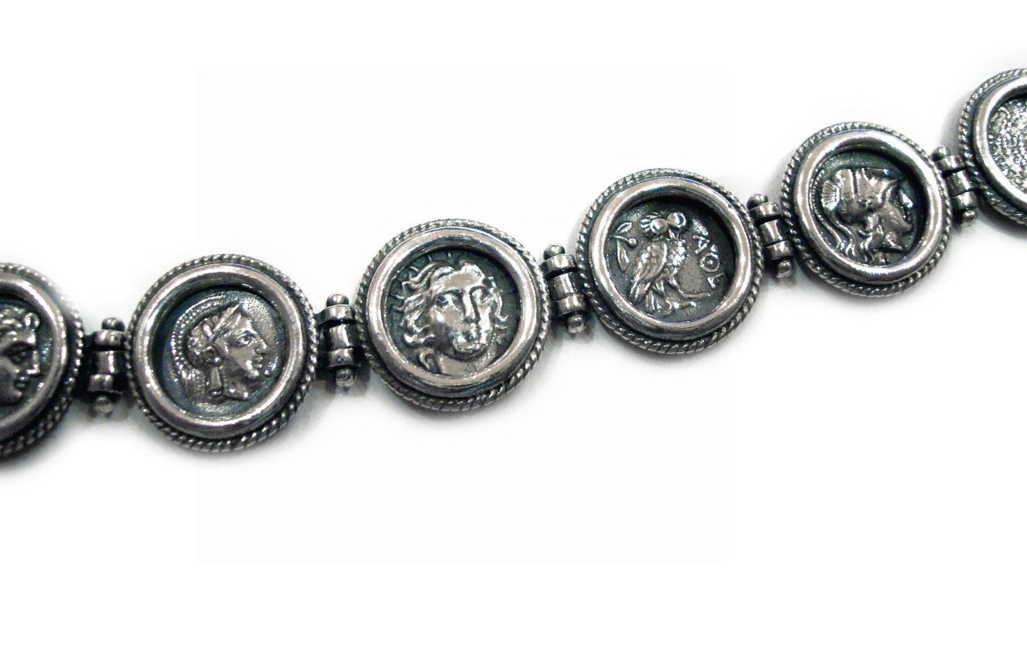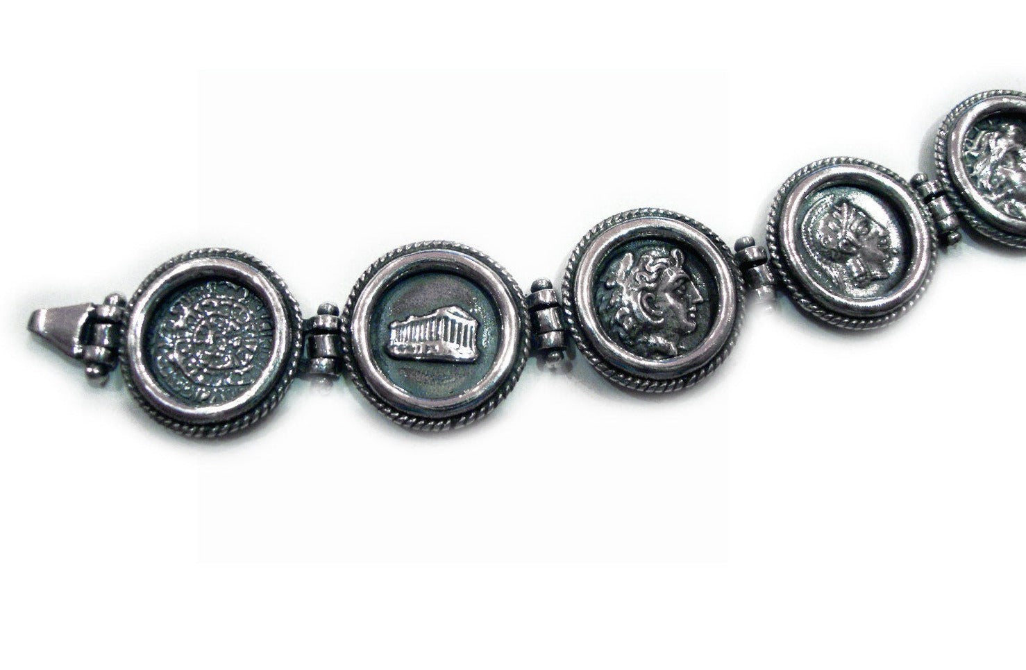 Bracelet made of Sterling Silver 925 ancient Greek replica coins of Phaistos Disc ,