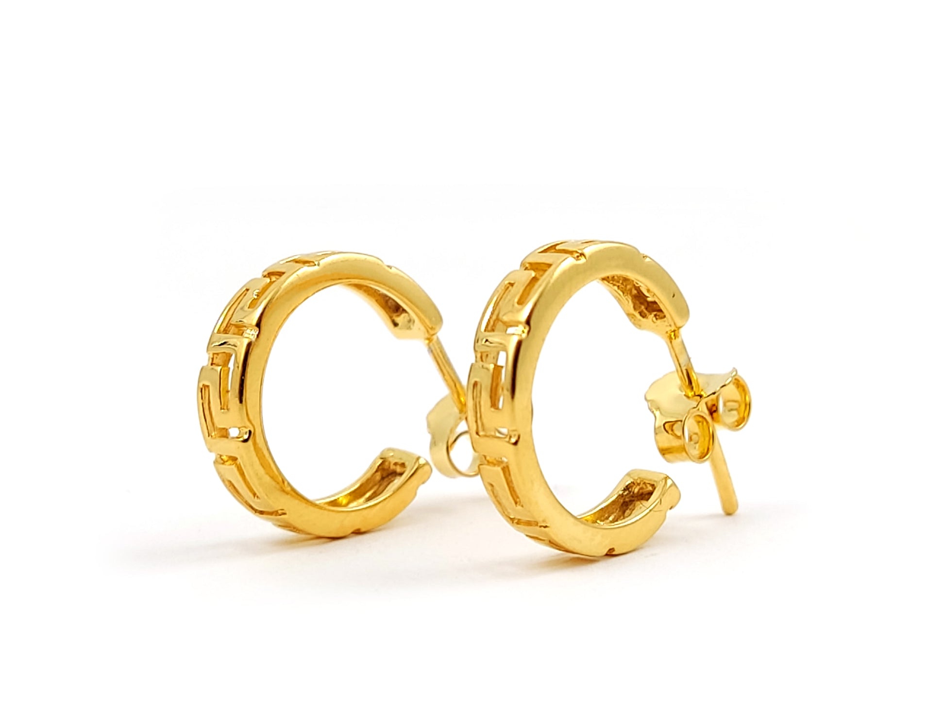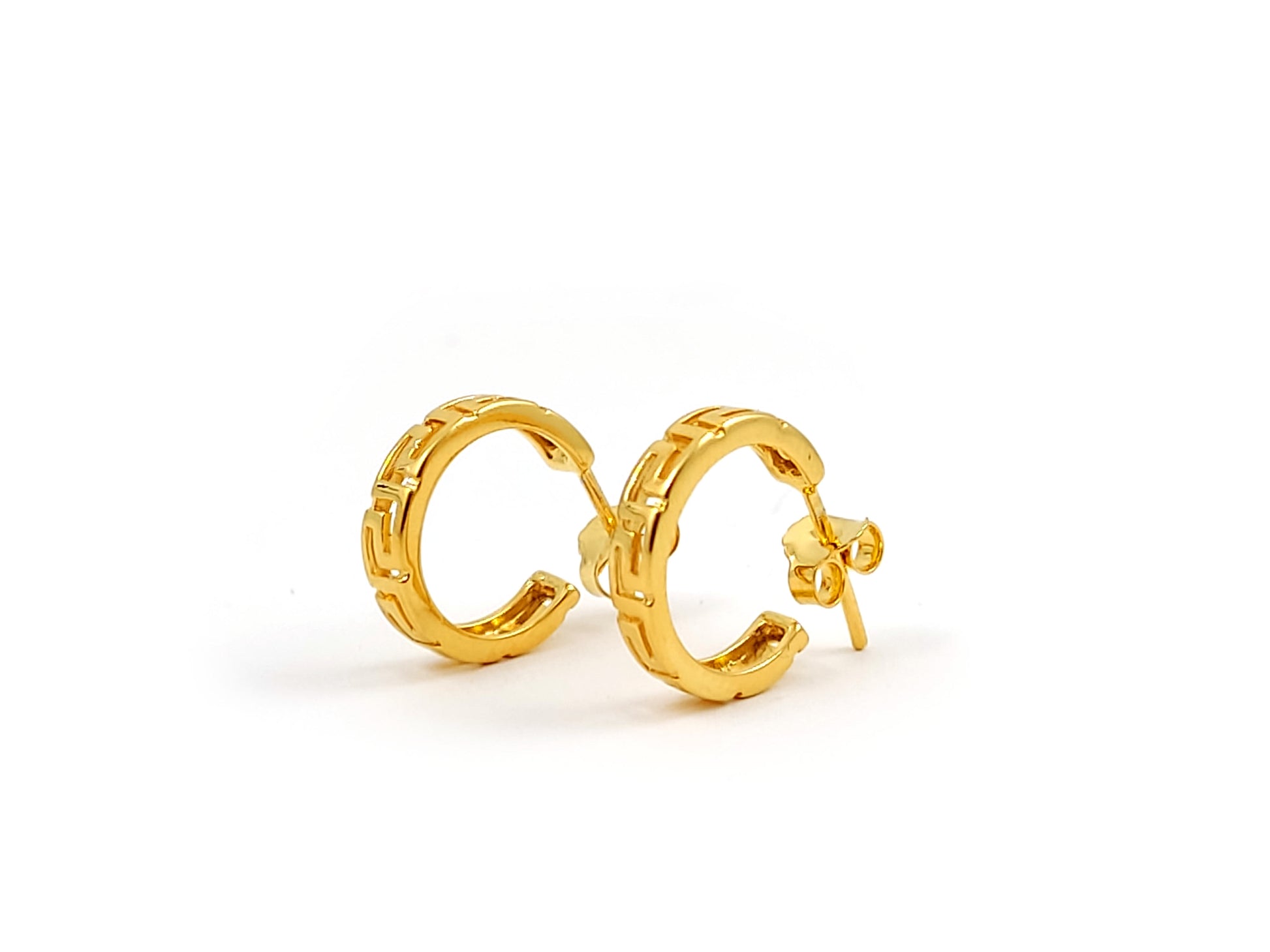 Greek Key Gold Plated Hoop Silver Earrings 15mm