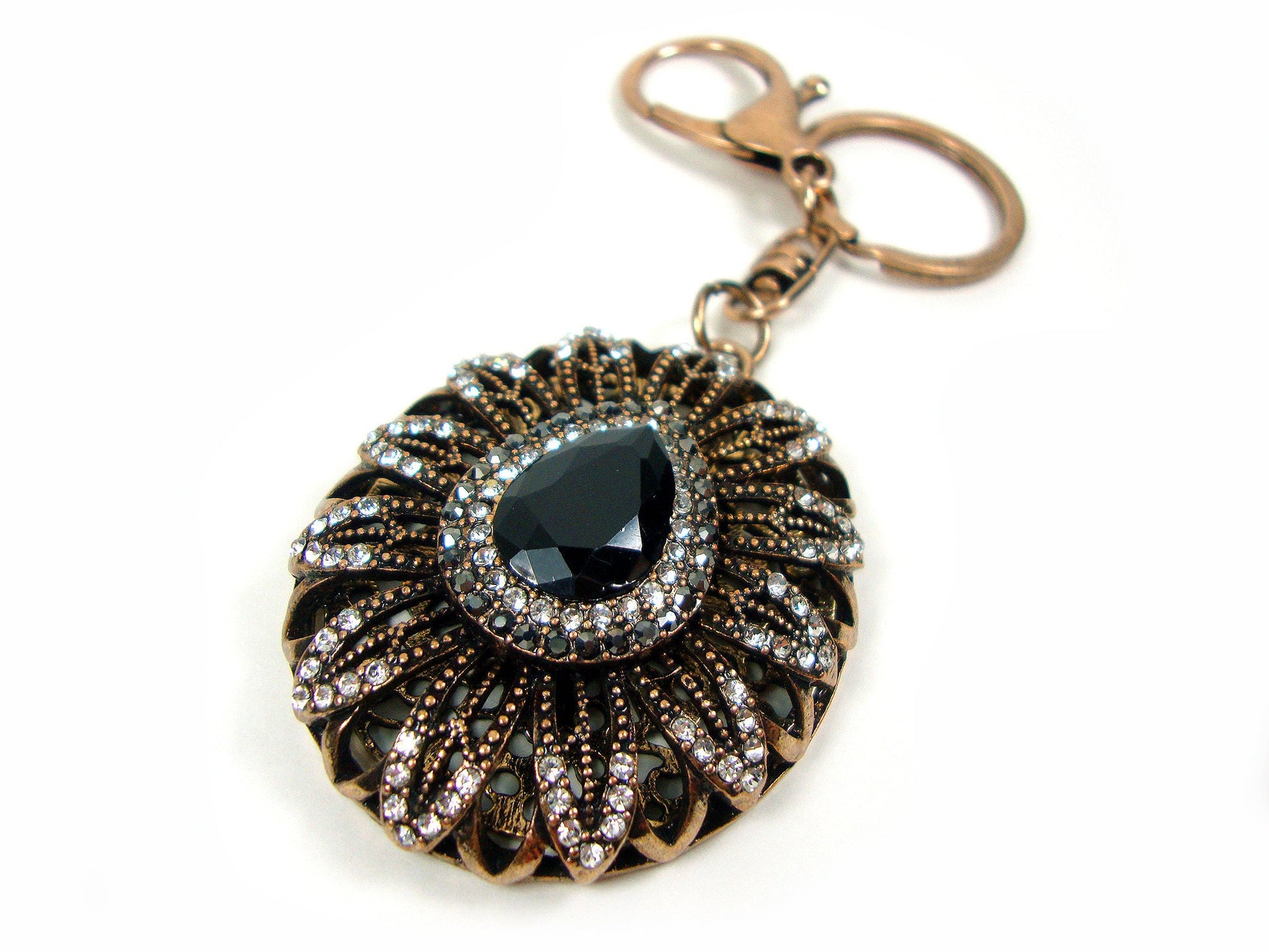 Modern Greek Antique Crystal Stones Oval Keyring , Ethnic Vintage Antique Keyring, Turkish Vintage Traditional Jewelry, Vintage Art